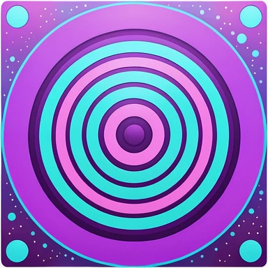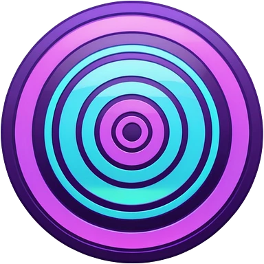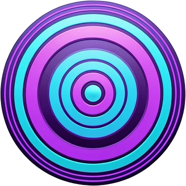 Flat bullseye target emoji, 2D icon, concentric rings, neon purple and cyan holographic glow, dark background, digital tech style, abstract sparkles, no depth, no face emoji