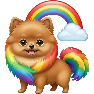A perfect Tan Pomeranian holding a pink glitter heart emoji