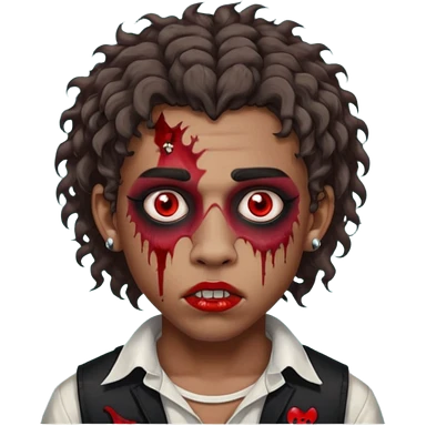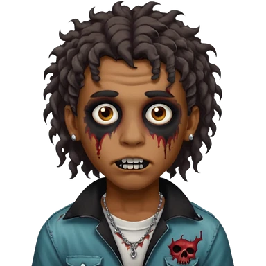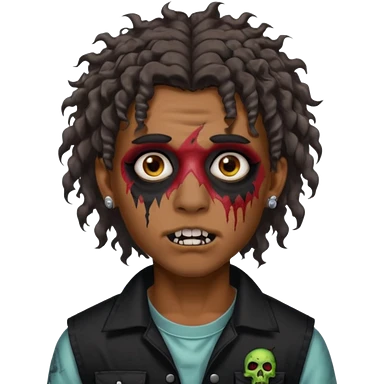⁹sou um garoto pardo, tenho cabelo cacheado tipo mullet e um piercing dos dois lados da boca. quero ser um zombi emoji