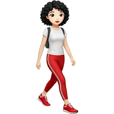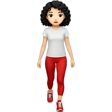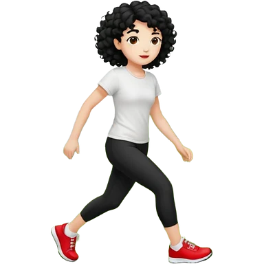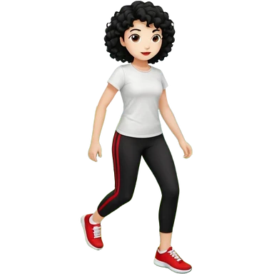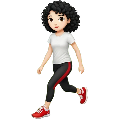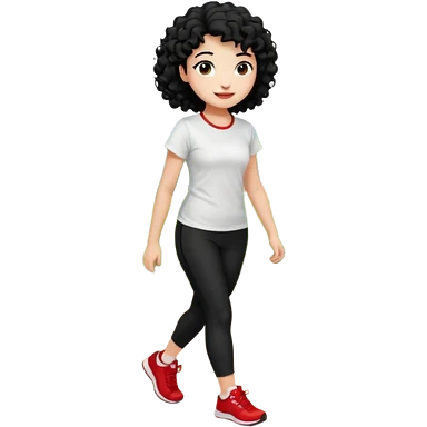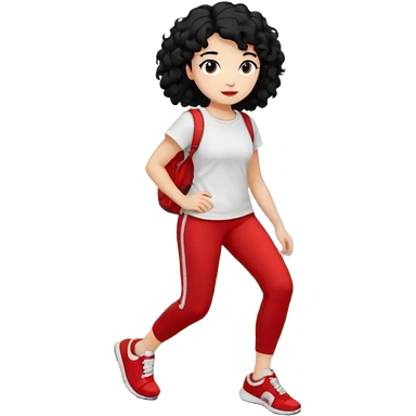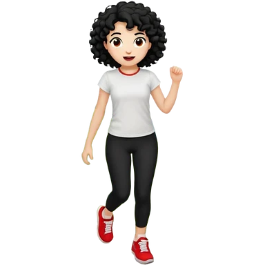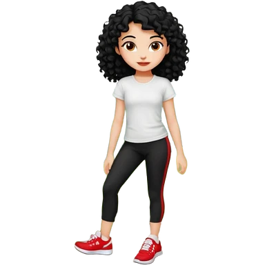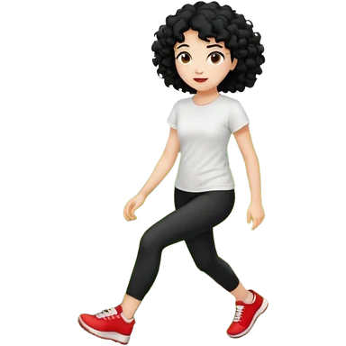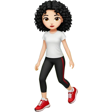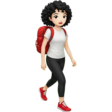 generate a pretty bratz fair skinned girl with curly black hair wearing a white tshirt trekking on a hill with red sneakers on and black leggings emoji
