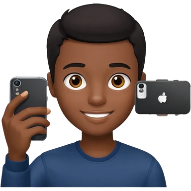 generate a pretty bratz dark skinned boy with short black hair taking a selfie emoji