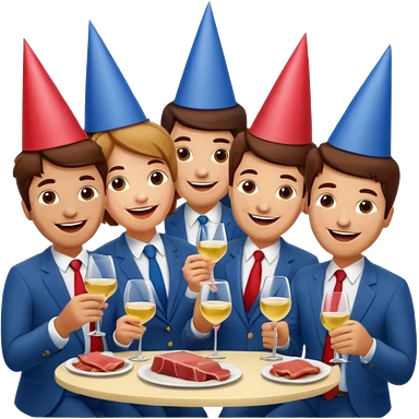 corporate executives enjoying wine Party at a french SPAM meat cafe LANDSCAPE emoji