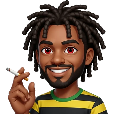 a ciggaret being inheld by a jamaican man with dreadlocks with red eyes and cunning smile emoji