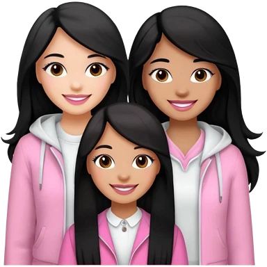 3 besties with professional glammed up looks wearing pink and white, medium skin tone smiling big with black long hair. Very girly emoji