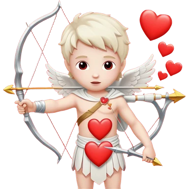 Cupid with his magical bow and arrow shooting love hearts emoji