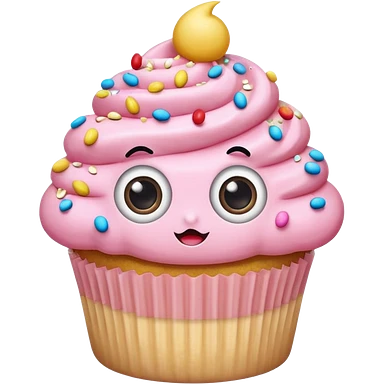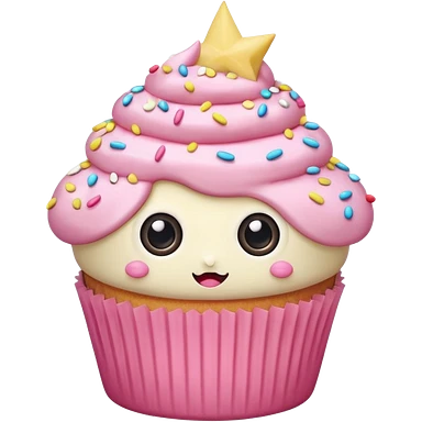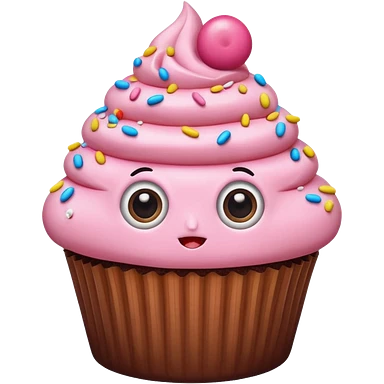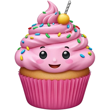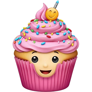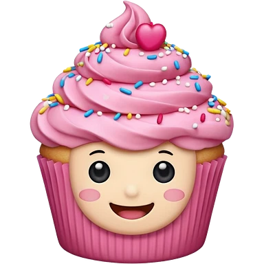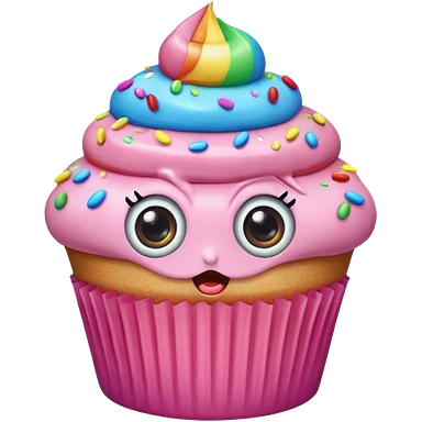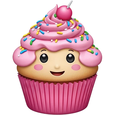 Cupcake with pink icing rainbow sprinkles and a cherry on top emoji