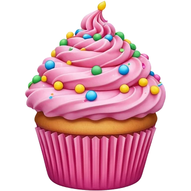 Cupcake: blue cream, purple paper, sprinkles with cherry on top emoji