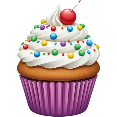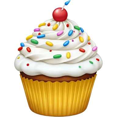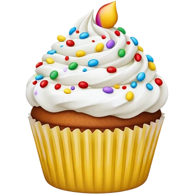 Cupcake with white icing and colorful sprinkles emoji