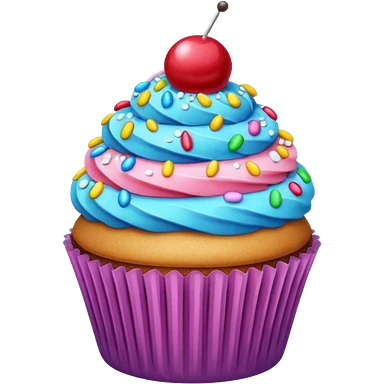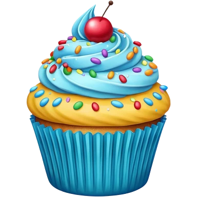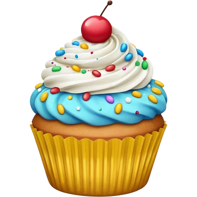Cupcake with a dog and with gloden and silver and blue and red icing emoji