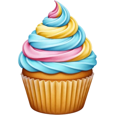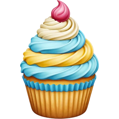 Cupcake with pink and blue icing and unicorn sprinkles emoji