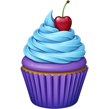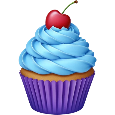 Cupcake: blue cream, purple paper, sparkless with cherry on top emoji