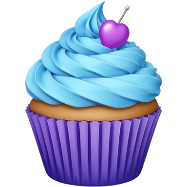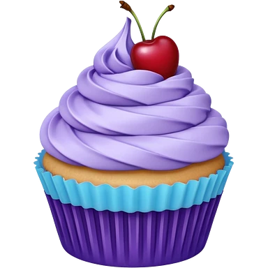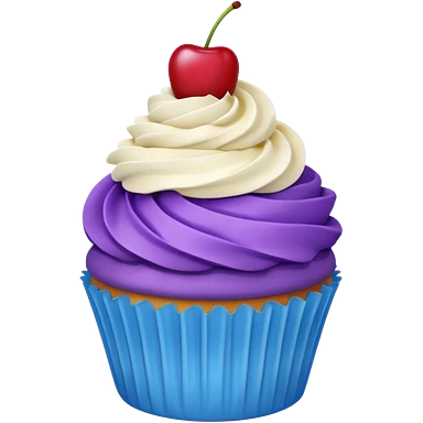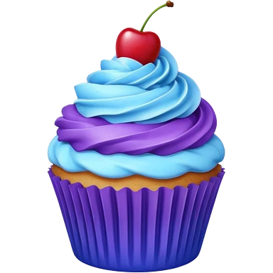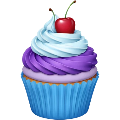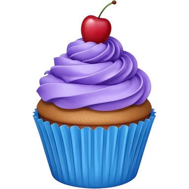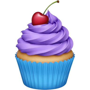 Cupcake: blue cream, purple paper with cherry on top emoji