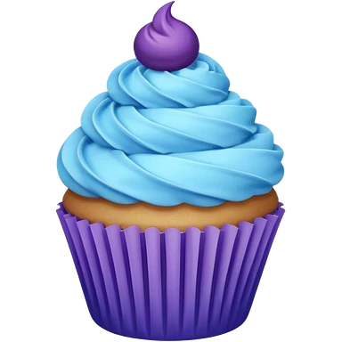 Cupcake: blue cream, purple paper emoji