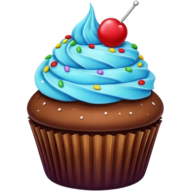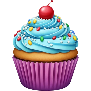 Cupcake: blue cream, purple paper, sprinkles with cherry on top emoji