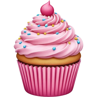 Cupcake: blue cream, purple paper, sprinkles with cherry on top emoji
