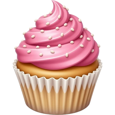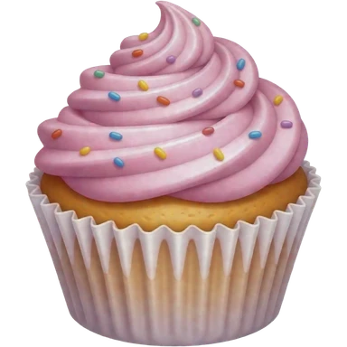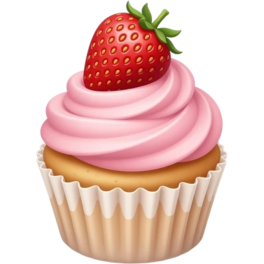 A cute and delicious cupcake topped with fluffy white whipped cream, colorful rainbow sprinkles, and a fresh strawberry on top, highly detailed, soft lighting, pastel tones, clean minimal background, realistic texture, high resolution emoji