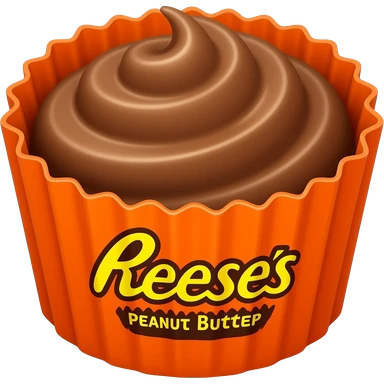 Cupcake chocolate dipped non swirly frosting with Reese’s pieces on top emoji | AI Emoji Generator