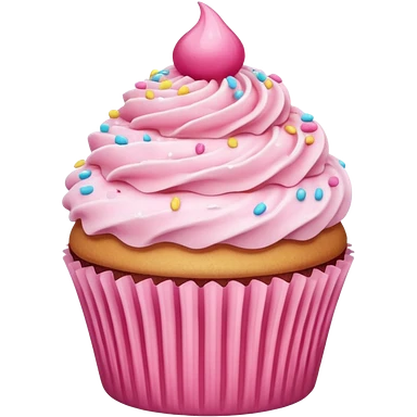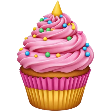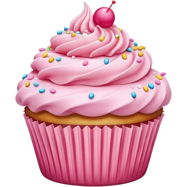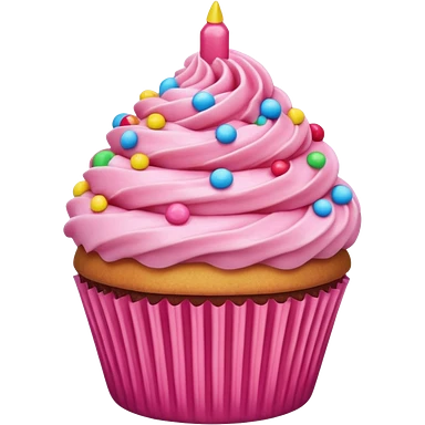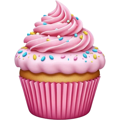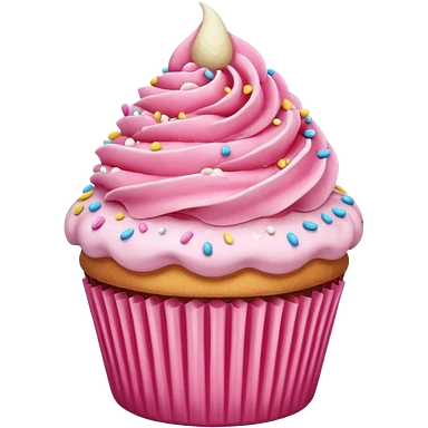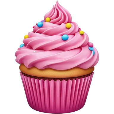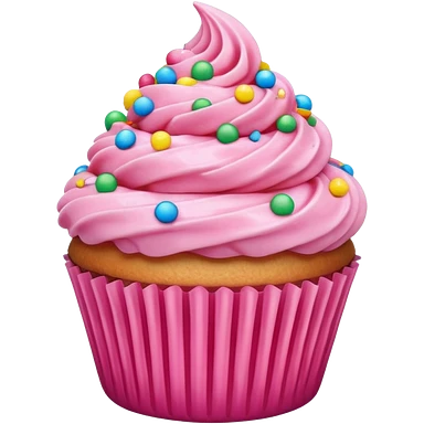 cupcake with pink icing with colorful sprinkles, chocolate cupcake base, 3D emoji style emoji