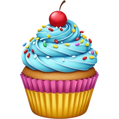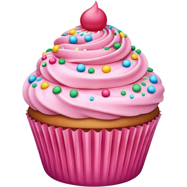 cupcake emoji with pink cake, chocolate icing, and rainbow sprinkles emoji