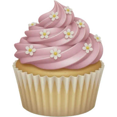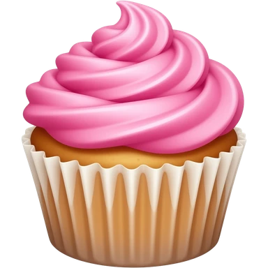 super realistic vanilla cupcake with a pink rose shaped frosting emoji