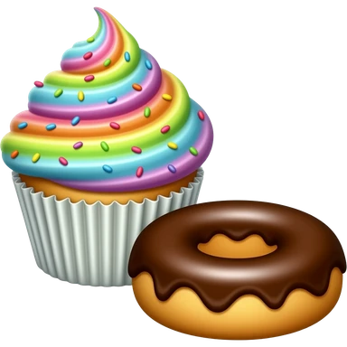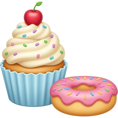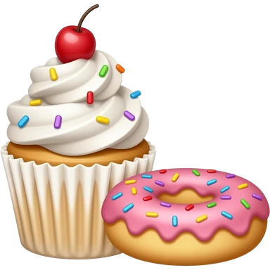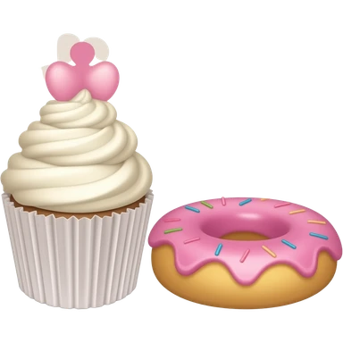 Light Pink Sprinkles cupcake and donut in the foreground emoji