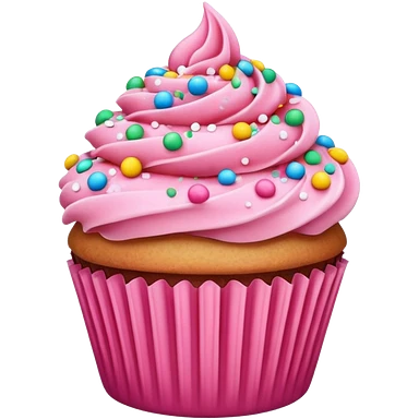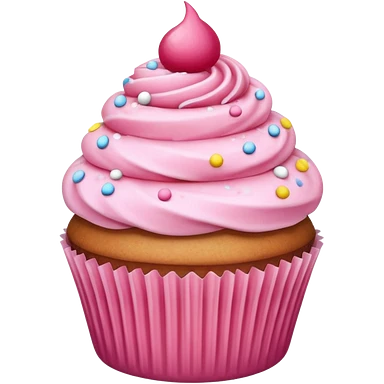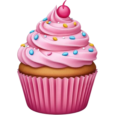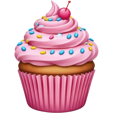 Cupcake with pink icing rainbow sprinkles and a cherry on top emoji