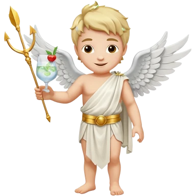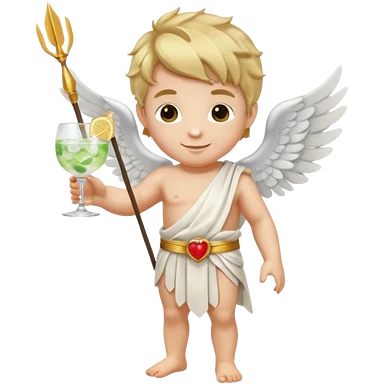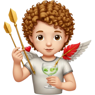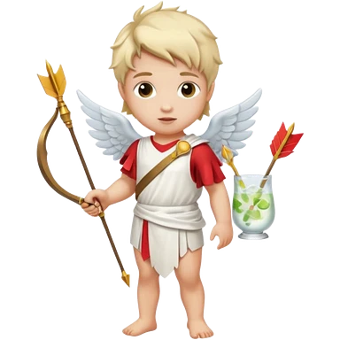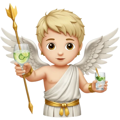 Cupid (with wings) with his arrow in his right hand, mixing a glass of Gin Tonic in his left hand emoji