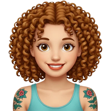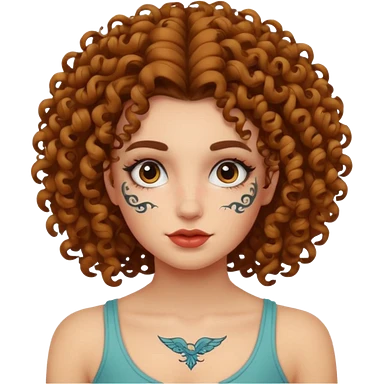 curley hair tattoo girl, full on face. emoji
