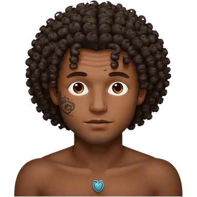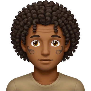 curley hair tattoo male, full on face. emoji