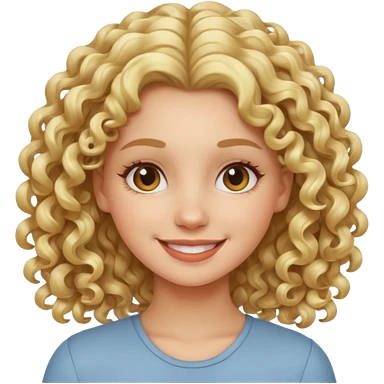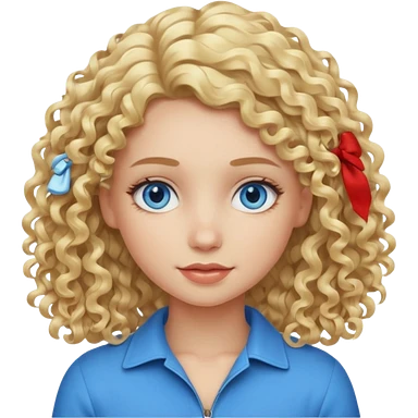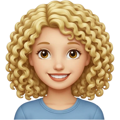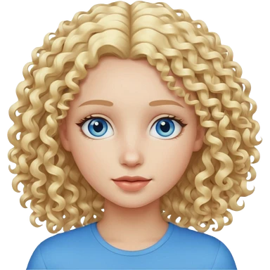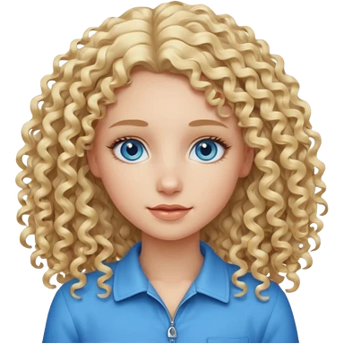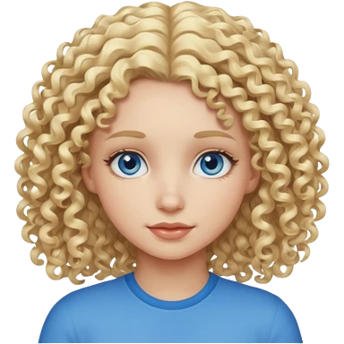 Curly blond blue eyes. Long hair cool beige blond emoji | AI Emoji Generator