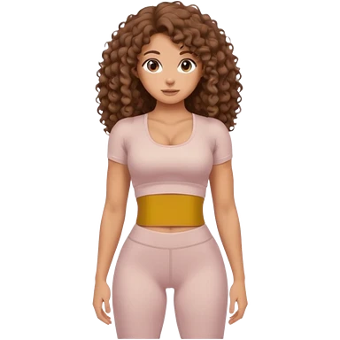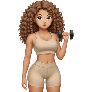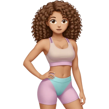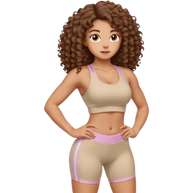 Create dream body girl with big glute and small waist and brown flat no volume curly long hair with pastel beige gym clothes emoji