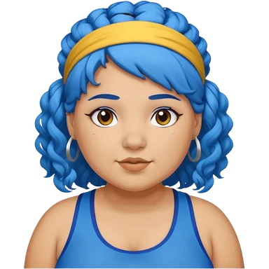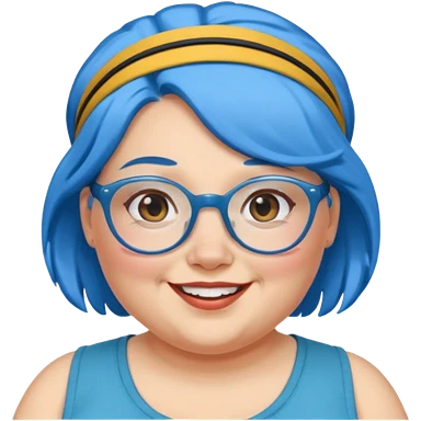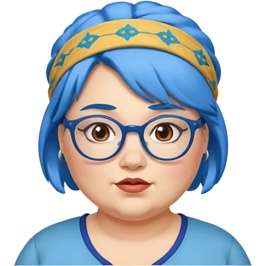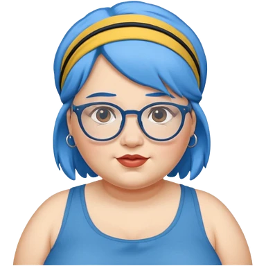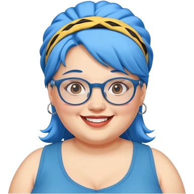 curly fat woman with blue hair and glassess and headband emoji | AI Emoji Generator