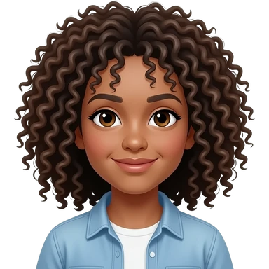 Curly haired dark brown thick eyebrien brown eyes sandy coloured skin thin pink rosy lips and doe eyes skin emoji