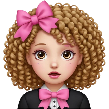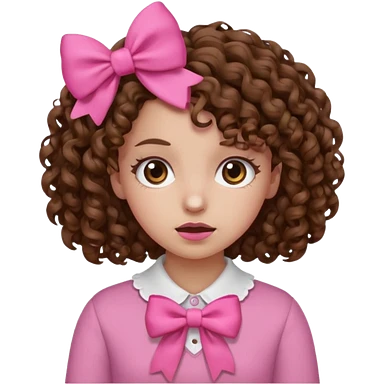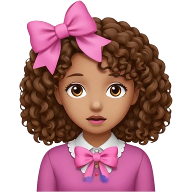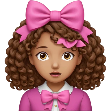 Curly hair brown hair tan skin girl, Pleading Face emoji, using pink bow emoji | AI Emoji Generator