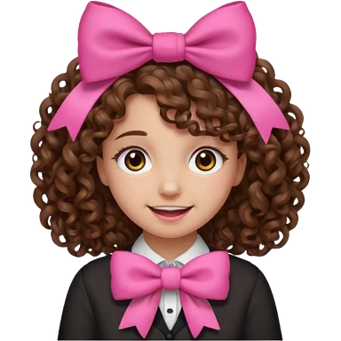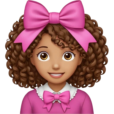 Brown curly hair girl with pink bow emoji