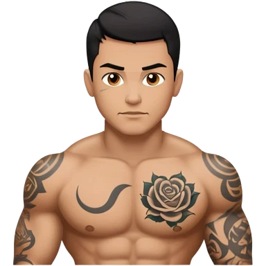 curly hair tatoon men gym body with bandana & sunglass emoji