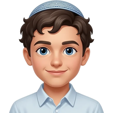 Payot style hair by ears Jewish boy with yamaka brown eyes emoji