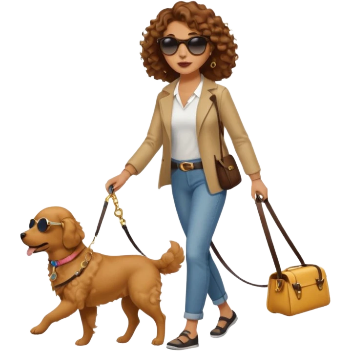 curly hair Woman walk with dog emoji | AI Emoji Generator