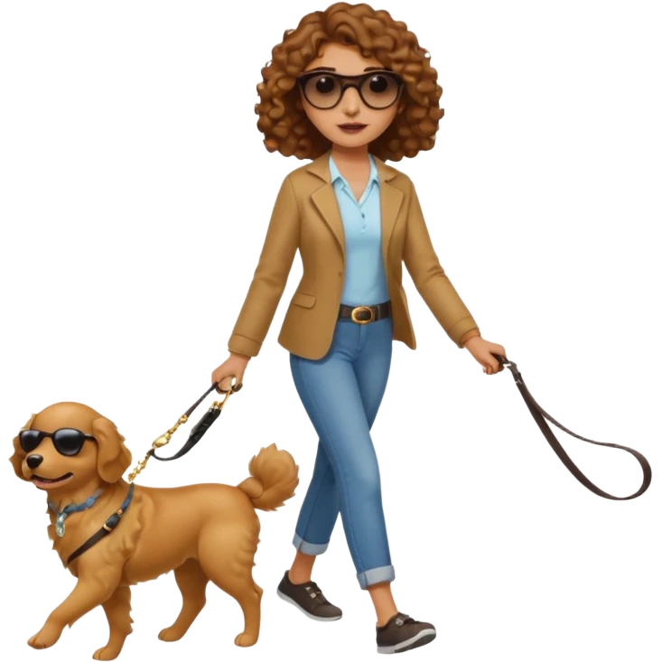 curly hair Woman walk with dog emoji | AI Emoji Generator