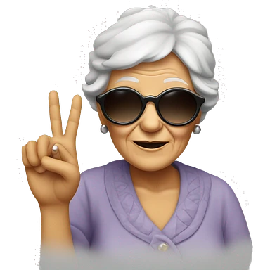 An old lady with cool sunglasses and a hand that does the “peace” sign emoji