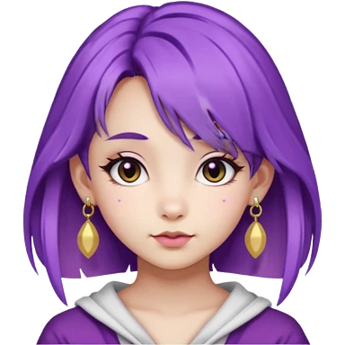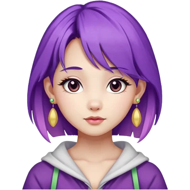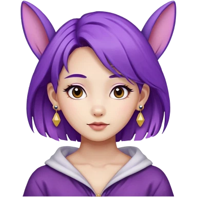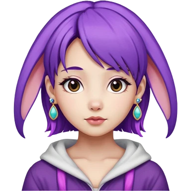 purple haired girl, asian, bunny eared and earrings emoji