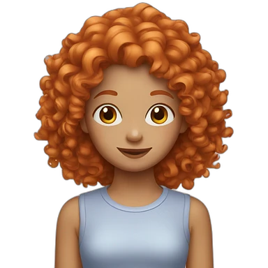 curly long ginger hair, pale skin, dark green eyes, pretty bratz baddie, black eyeliner, blush emoji
