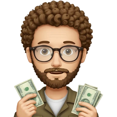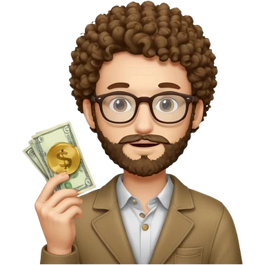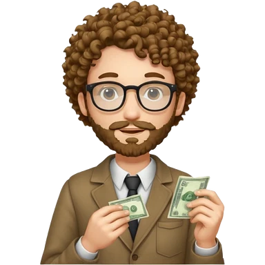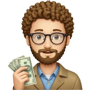 curly skinny guy with bear with glasses, with some money in the hands emoji