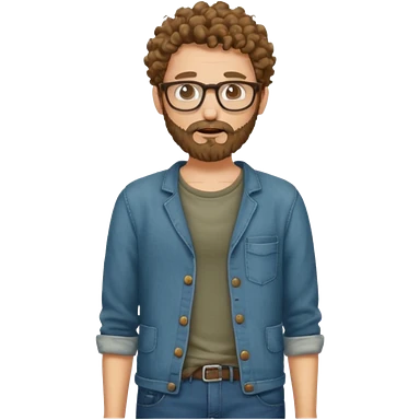 curly skinny guy with bear and glasses, poor and greedy with the pockets empty emoji
