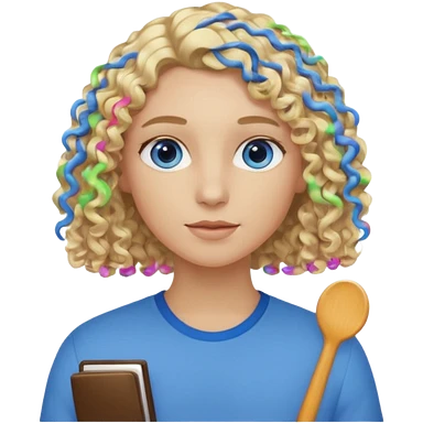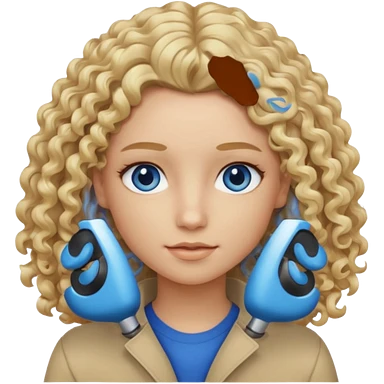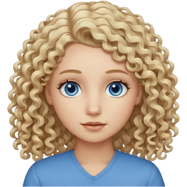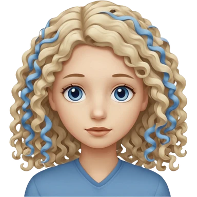 Curly blond blue eyes. Long hair cool beige blond emoji