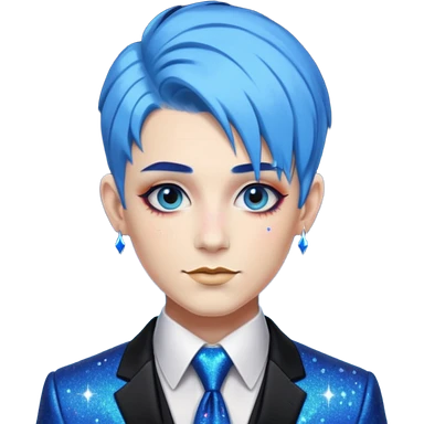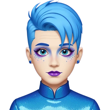 blue hair drag king fabulous makeup with glitter emoji