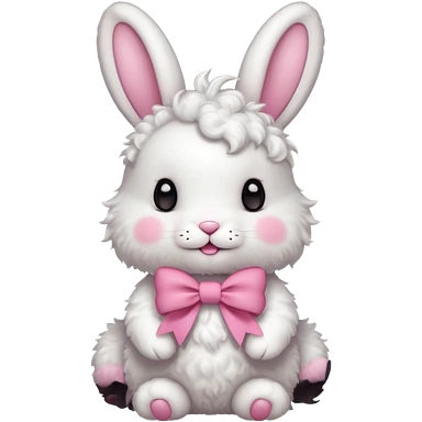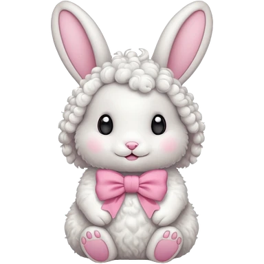 curly white bunny with pink bow emoji | AI Emoji Generator
