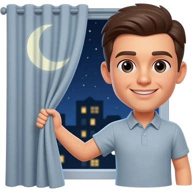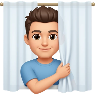 curtains hair style, wide apart eyes, two big front teeth, white male, emoji
