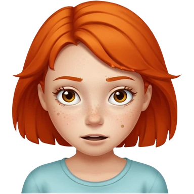 Ragazza, alta 1,58m, castana capelli mossi, occhi marroni, testa in cuscino soffice azzurro, imbarazzo emoji