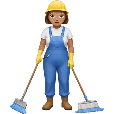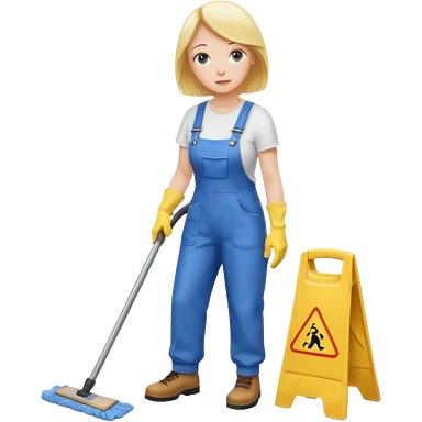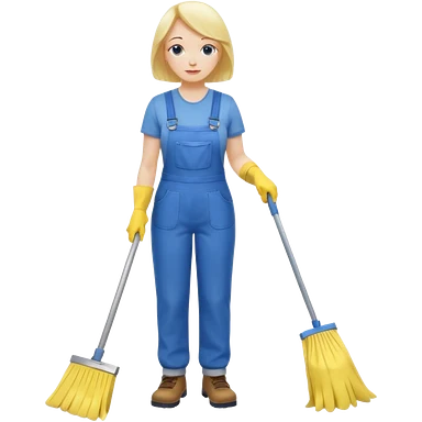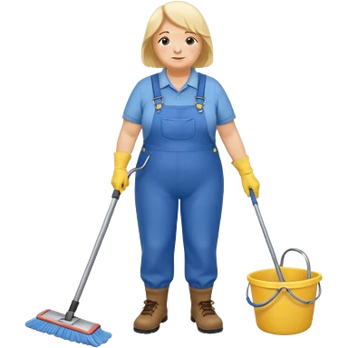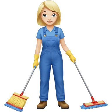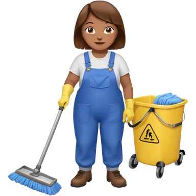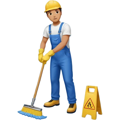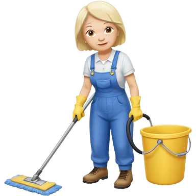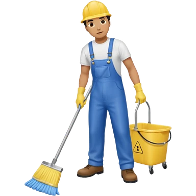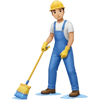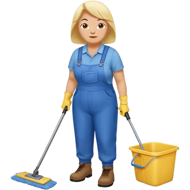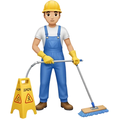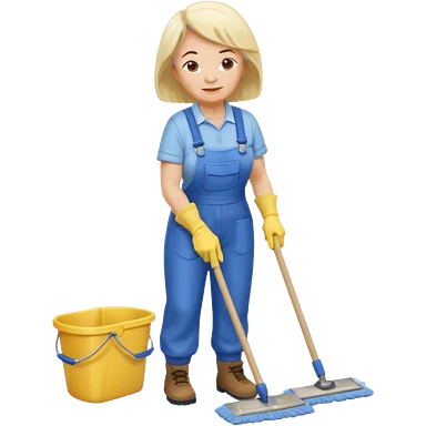 Custodian with yellow rubber gloves, blue overalls, mopping floor emoji | AI Emoji Generator